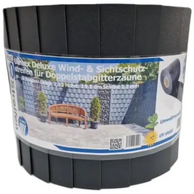 Sichtschutzstreifen Maximus, geriffelt, PP-Kunststoff, 2530 x 191 x 1,5 mm, anthrazit (ähnlich RAL 7016) – Sicht- und Windschutzstreifen für Doppelstab- und Gittermattenzäune