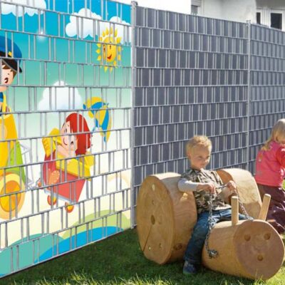 Florenz Squares – Einzelstreifen Design-Vlies Sichtschutz für Zaun | 2,60 m × 19 cm | Dekorativer Sichtschutzstreifen für moderne Zaunoptik